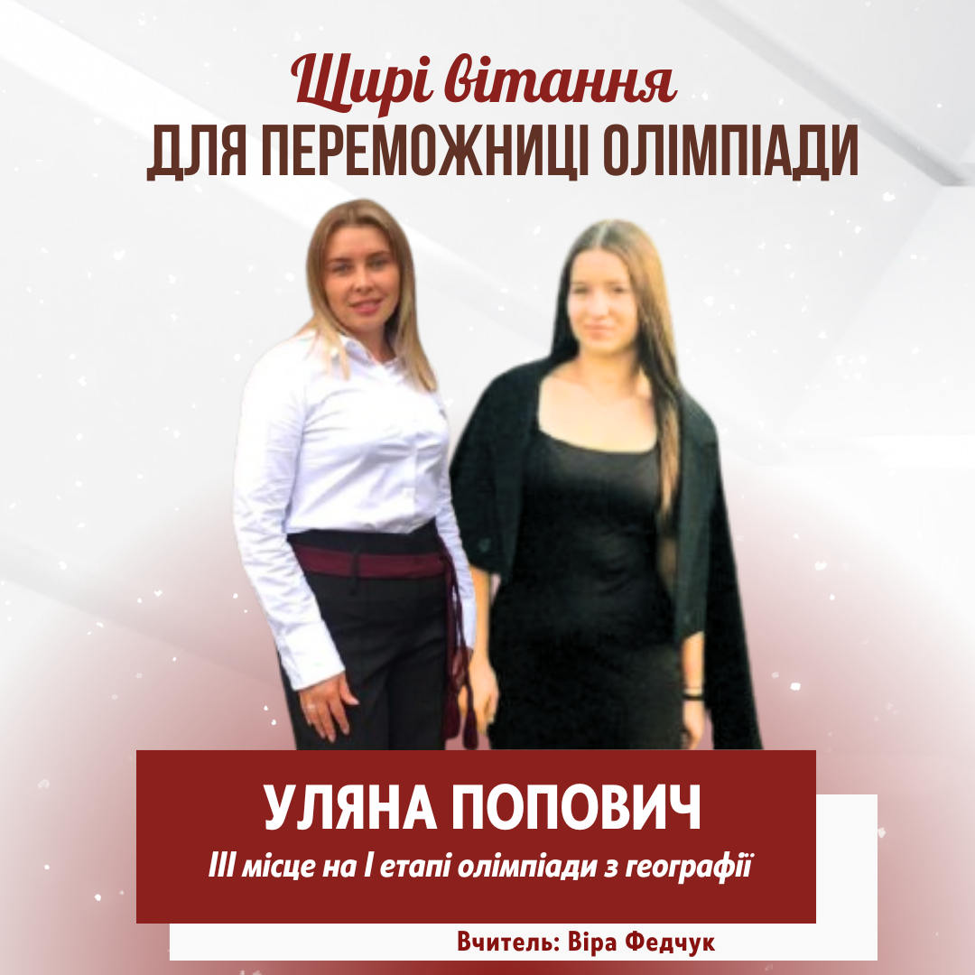 ✨ Попович Уляна, 8-А - ІІІ місце.